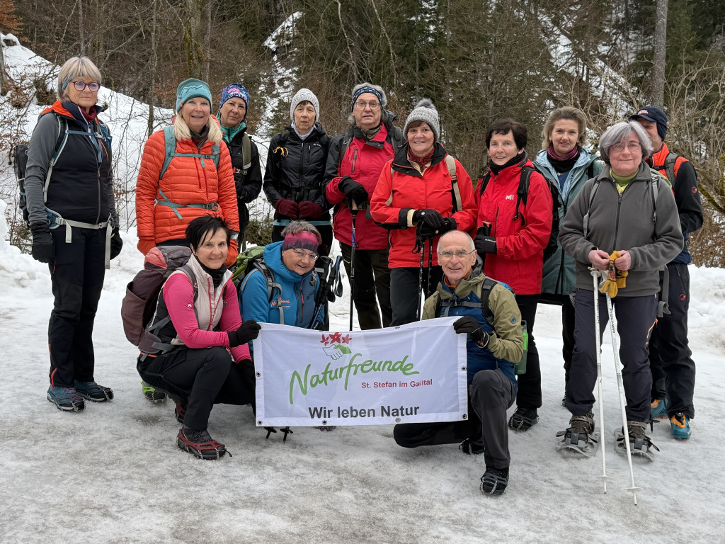 14 Naturfreunde folgten der Einladung der Ortsgruppe St. Stefan i.G. zur Wanderung in den bekannten Wallfahrtsort Lussari über den Pilgerweg mit knapp 1000 hm, ausgerüstet mit Tourenskiern, Krallen und Schneeschuh.